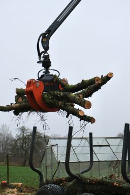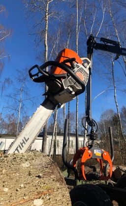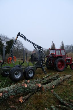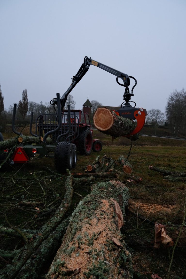Om ni inte vill ha veden av trädet så transporterar jag bort det med hjälp av traktor och vagn som är utrustad med lyftkran. Ris och grenar från träden tar jag också med mig.