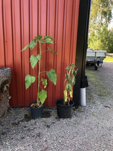 Flis har som ni ser en stor fördel, både för att behålla fukten i jorden och ge näring. Behöver nog inte förtydliga vilken kruka där är flis i...